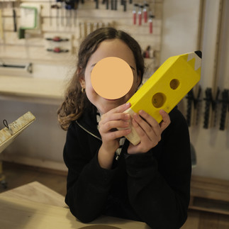Day 4: We focused on the final touches of our projects, then spent the rest of the day creating freely with the kids’ imaginations. They became real inventors, using wood scraps to bring their ideas to life. It was such a pleasure to guide them through their visions.